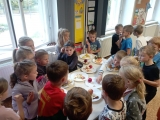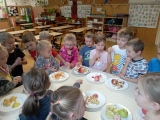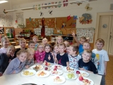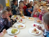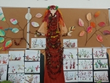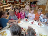 Na podzim prvňáčkové měli ovocný a především jablíčkový den. Vyzkoušeli si rozmanitost chutí jablíček ze zahrádek. A navíc v 1.B si děti ozdobily podzimní královnu přírodninami.