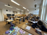 Žáci 8.A měli za dobrovolný úkol vyrobit 6 různých hranolů z jakéhokoliv materiálu. Všem zúčastněným se moc povedly. Jedna žákyně Ema Přeučilová nás velmi překvapila svým originálním nápadem a upekla dortíky ve tvaru hranolů. Nejenže vypadaly krásně, ale i výborně chutnaly celé třídě, Ema si vysloužila potlesk od celé třídy. Patří jí od nás všech velké poděkování.