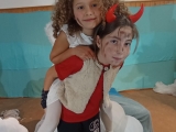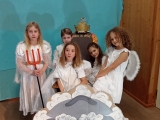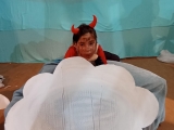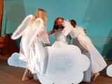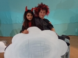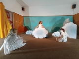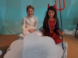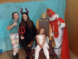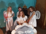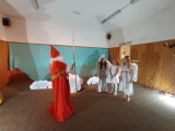Poprvé jsme se v tomto letošním složení viděli na konci září, kdy jsme rozjeli nový školní rok. Divadelní představení již tradičně děláme pro předškoláky, většinou v únoru. Čekalo nás tedy plno práce. Chtěla sem ho letos adventně ladit. Sondovala jsem klima mezi dětmi, někdo by si rád zahrál v nebi někdo raději v pekle. Vymyslela jsem hlavní dějovou linku a v dalších hodinách jsme zkoumali, jak se mají andělé v nebi a co vše může způsobit příliš snaživý anděl - Andělka. Spíš věci zamotala a popletla. Bylo jí smutno a raději se rozhodla z nebe odejít. Jenže, křídla fungují až o Vánocích. Kdo zachrání poraněného anděla na zemi? Naštěstí ho našla trochu divoká Žanda, odvedla ji domů a s maminkou se o ni postaraly. Naučily ji zpívat a péct perníčky. Jednoho dne našla podivný deník se zápisky, co provedly děti. Patřil čertovi. Jak se o deník přetahovali, vzal ji i s deníkem do pekla. Kdo kdy viděl Anděla v pekle, kam ho schovat? V pekle z toho byl pěkný poprask. Anděla odhalili. Andělce se povedlo dokázat, že kamarádka Žaneta, má i dobré srdce. Peklo jí hříšky odpustilo, ale Andělka musela, co nejrychleji zpět. Čerti otevřeli tajný průlez přímo do nebe. Tam měli velkou radost, že ji mají zpět. Obdivovali hezký zpěv a Mikuláš ocenil, že změnila pekelné plány. Vybral si ji jako doprovod k dětem.