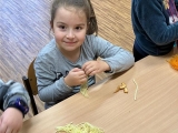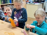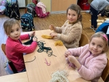 Děvčata nejen v ranní družině, ale i v odpoledním čase přijala významnou výzvu. S ochotou, ale i jistým nadšením se zapojují do přípravy "komponentů", které jsou potřebné pro zhotovení dárečků na uvítání budoucích prvňáčků v době zápisu do naší školy. Svou pílí a úsilím dávají všem najevo, jak se na své nové kamarády těší.