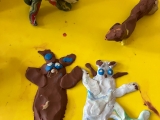 Od prvního dne, kdy jsme se po vánočních prázdninách vrátili do školy, děti s nedočkavostí vyhlížely den, kdy zase půjdeme společně na "čtecí chvilku" za paní knihovnicí do naší městské knihovny. Překvapením pro naše prvňáčky bylo seznámení se zcela novou knihou, která je pokračováním knihy Povídání o pejskovi a kočičce. Děti při poslechu vytvářely hlavní hrdiny z modelíny.
