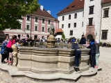 Naše společná středeční odpoledne ve školní družině jsou zpravidla spojena s návštěvou městské knihovny. Poslední dubnovou středu jsme však udělali výjimku a využili jsme pozvání paní kastelánky E.Suchanové a společně jsme navštívili výstavu Pohádkový svět loutek, která se nachází v třeboňském zámku. 48 párů dětských očí si s úžasem prohlédlo tuto krásnou výstavu loutek, z nichž mnohé jsou staré i 100 let. Precizní práce našich předků je nádherná. Mezi těmito loutkami jsme objevili i loutku čerta, která se nápadně podobá panu Spejblovi. Aby také ne, když jejím autorem není nikdo jiný než sám pan Skupa. Děti se s velikým zájmem pustily i do vyplňování pracovního listu, na jehož konci čekala malá odměna. Veliké poděkování patří 5 zástupcům z řad rodičů, kteří nás na výstavu doprovodili.